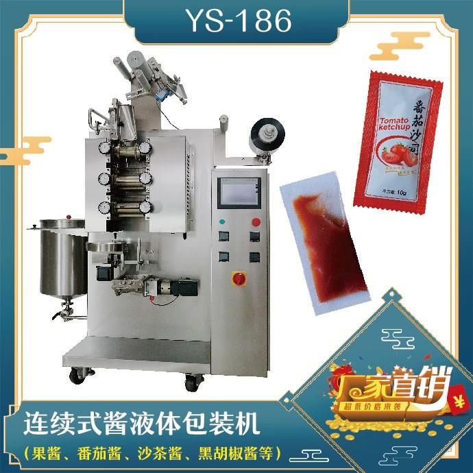 YS-186 連續(xù)式醬體包裝機(jī)特 點(diǎn) 1、適用于食品、化妝類粉劑、液體、醬體等物品的計(jì)量包裝。2、可自動完成制袋、計(jì)量、下料、封合、分切、計(jì)數(shù),可根據(jù)客戶要求配置打印批號等功能。3、觸摸屏操作,PLC控制,伺服電機(jī)控制袋長,性能穩(wěn)定、調(diào)整方便、檢測準(zhǔn)確。智能式溫控儀,PID調(diào)節(jié),保 證將溫度的誤差控制在1℃內(nèi)。…